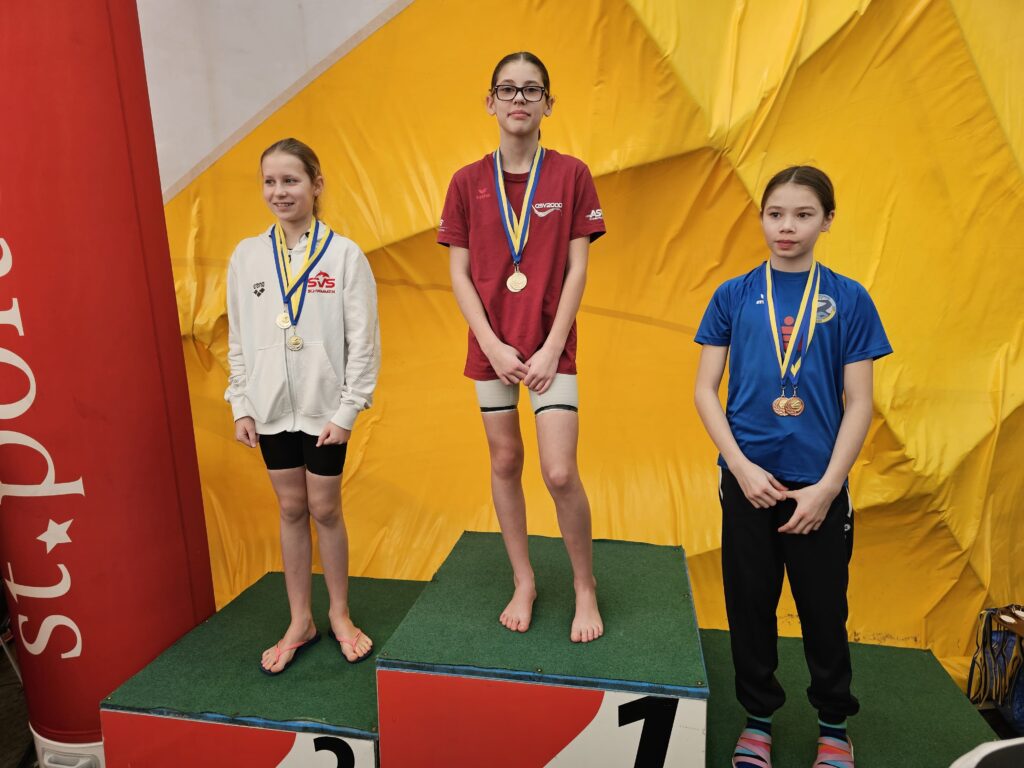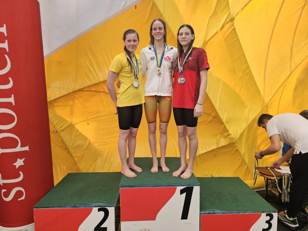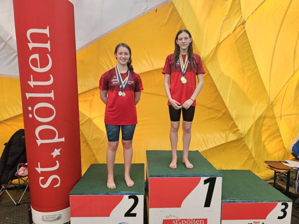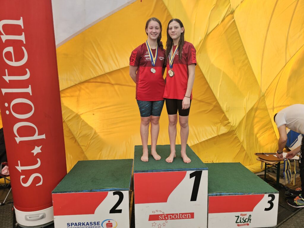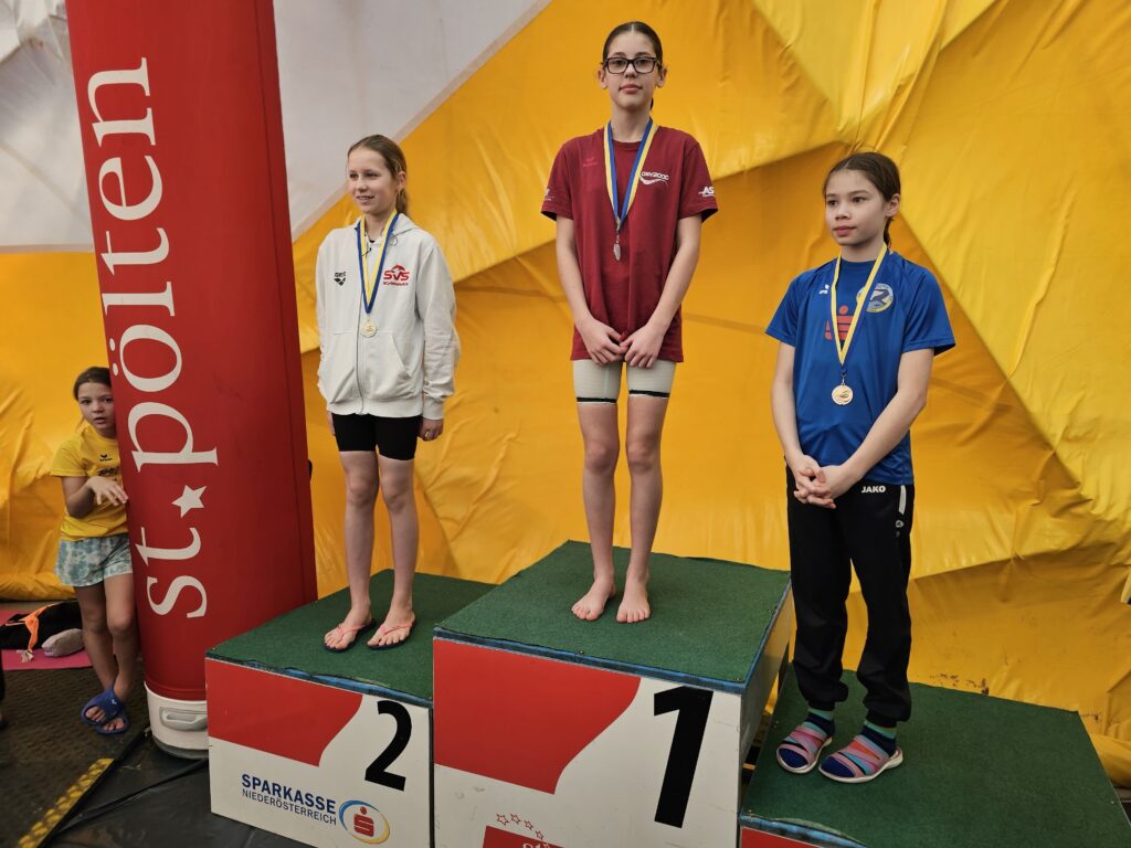 Alena Platz startete über 400 Meter Lagen und 1500 Meter Freistil und nahm insgesamt sechs Mal Edelmetall mit nach Hause: Über 1500 Meter Freistil holte sie Gold in ihren Altersklassen Jugend 3 und Jugend 3 NÖ. In der Allgemeinen Klasse und Allgemeine Klasse NÖ belegte sie jeweils den dritten Platz. Über 400 Meter Lagen gewann sie Silber in der Jugend 3 NÖ sowie Bronze in der Jugend 3. Juliana Strambach gewann im Bewerb 200 Meter Lagen Gold in ihren beiden Altersklasse-Wertungen sowie zweimal Silber über 400 Meter Freistil. Lilly Weiss holte sich jeweils die Silbermedaille über 1500 Meter Freistil in der Wertung Jugend 3 und Jugend 3 NÖ.