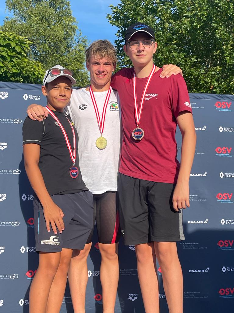 Christian Giefing durfte sich über insgesamt fünf A-Finalteilnahmen freuen. Über 1.500 Meter Freistil schlug er als guter Dritter an, im Bewerb 400 Meter Freistil landete der ASV2000-Schwimmer sogar auf dem tollen zweiten Platz. „Christian hat damit seine Saison mehr als gekrönt und seinen Eintritt ins Leistungszentrum Südstadt ab kommendem Jahr bestätigt“, freuten sich die ASV2000-Trainer Chris Strambach und Dominic Meidlinger. Aber auch die beiden Debütanten Josef Krämer und Kayra Yurdakul – die in dieser Saison erstmals bei den Nachwuchsmeisterschaften antraten – wurden für ihren Trainingseifer mit Finaleinzügen belohnt. Im Finale über 100 Meter Brust verpasste Josef Krämer als Vierter nur knapp das Podest. Über 200 Meter Brust war Josef im Vorlauf Vierter, schlug im Finale dann als Fünfter an. „Die Nervosität war bei unseren beiden Debütanten zu spüren, sie haben sich aber sehr gut verkauft und ebenfalls beide super Leistungen gezeigt. Das Niveau der Konkurrenz ist sehr hoch, und wir freuen uns sehr, dass unsere Schwimmer durchaus weit vorne mithalten können“, zogen die ASV2000-Trainer nach dem Highlight der Saison positive Bilanz.