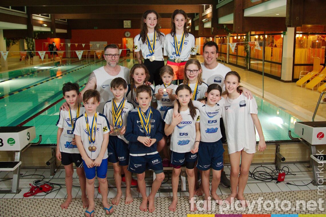 Für zweimal Gold sorgten auch die ASV2000-Mädls-Staffeln mit Emilia Hengstberger, Melissa Schartner, Hannah Schuster und Sophie Vohryzka. Sie gewannen sowohl die 4×50 Meter Freistil als auch die 4×50 Meter Lagen souverän vor ihren Konkurrentinnen.