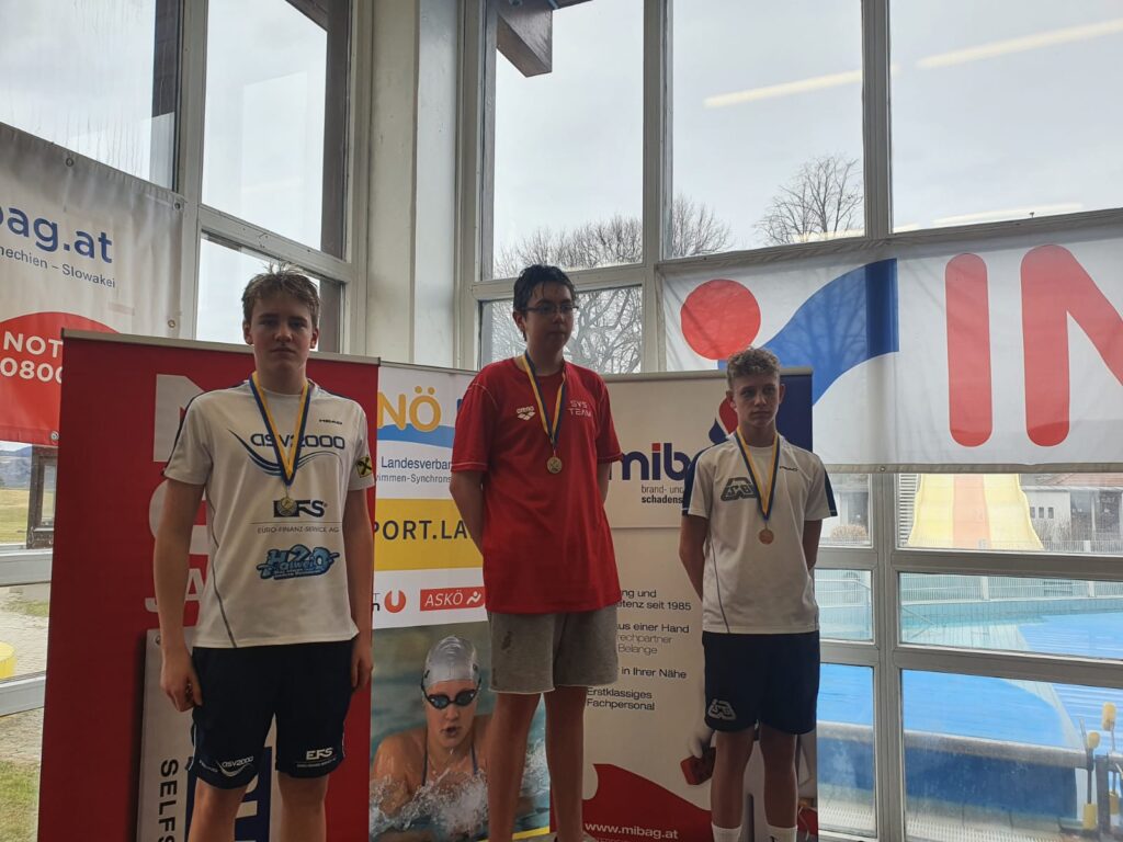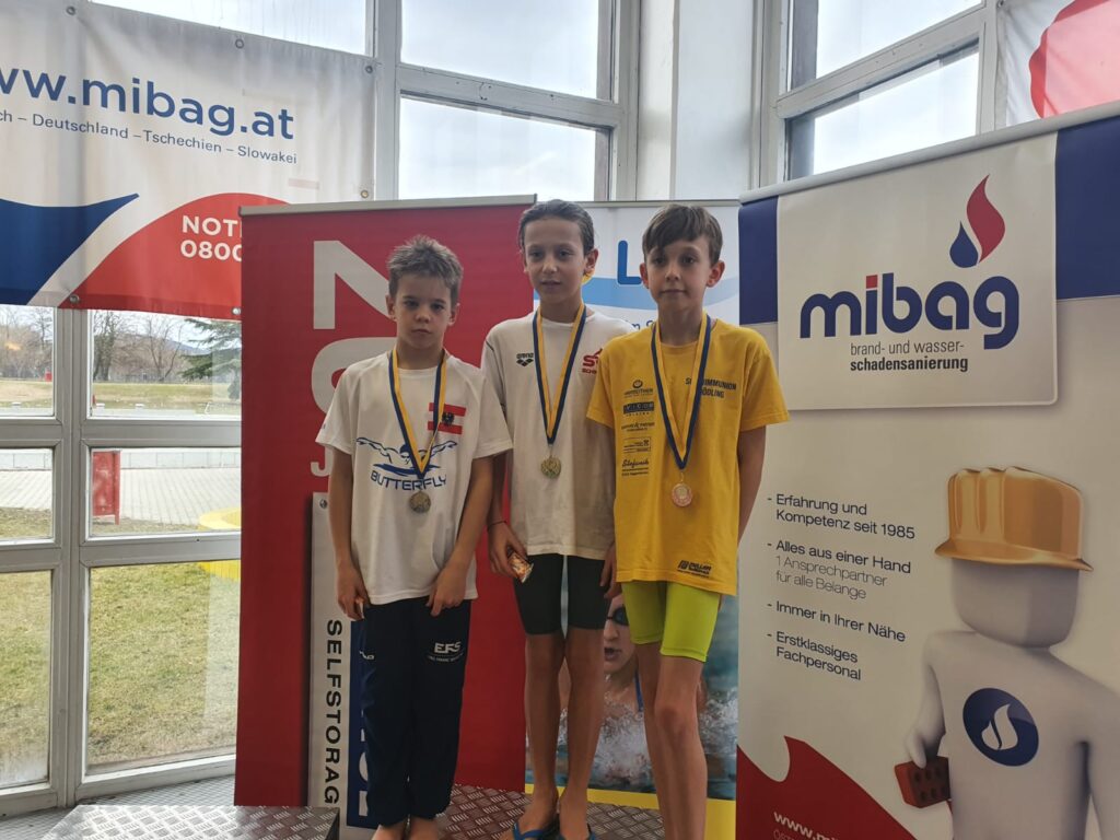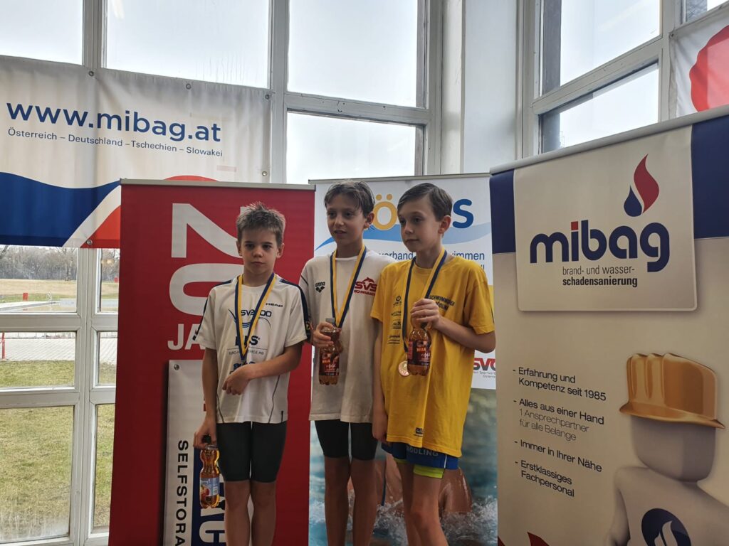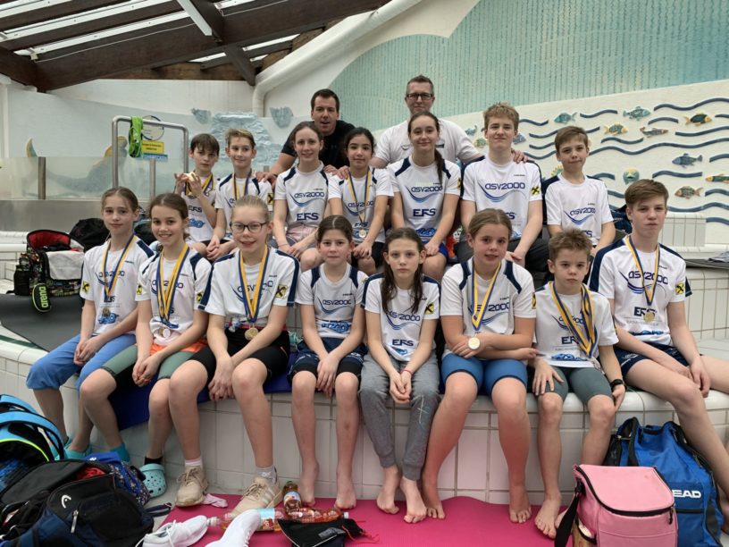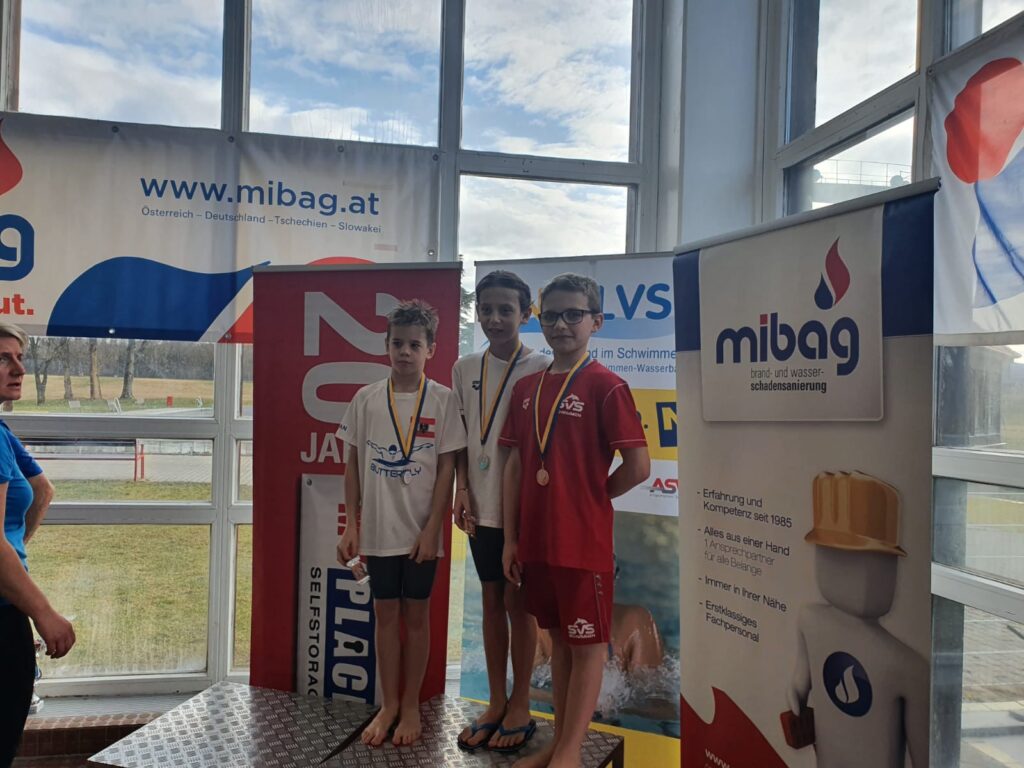 Die Landesmeistertitel wurden diesesmal überwiegend von den Brust-Spezialisten des ASV2000 gewonnen. So konnte sich Niklas Schuster (Jg.2005) über den Sieg im Bewerb über 100 Meter Brust freuen. Emilia Hengstberger (Jg. 2008) wurde Landesmeisterin über 50 Meter Brust und Josef Krämer (Jg. 2010) holte sich im gleichen Bewerb den Landesmeistertitel bei den Herren. Außerdem sicherte sich Krämer noch die Goldmedaille und den Landesmeistertitel über 50 Meter Freistil. William Elliott (Jg.2005) gewann den Bewerb über 100 Meter Freistil in einer tollen Zeit von 59, 18. Eine weitere Goldmedaille steuerte noch die erfolgreiche Mädchen-Staffel des ASV2000 bei: Hannah Schuster, Emilia Hengstberger, Melissa Schartner und Sophie Vohryzka erkämpften sich im 4×50 Meter Lagen Bewerb in einem wahren Krimi den obersten Podestplatz. Über die 4×50 Meter Freistil erzielten das ASV2000-Quartett Silber.