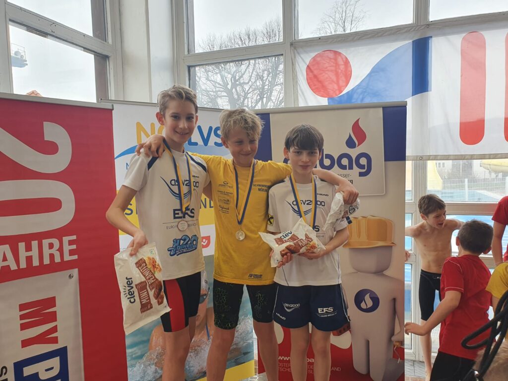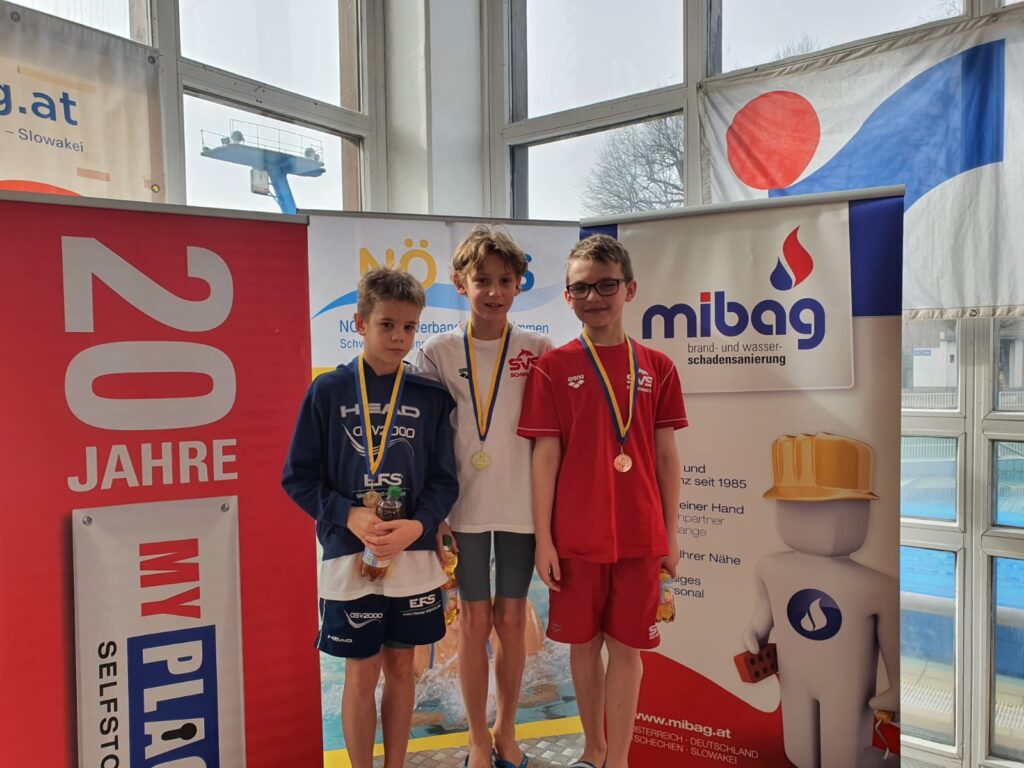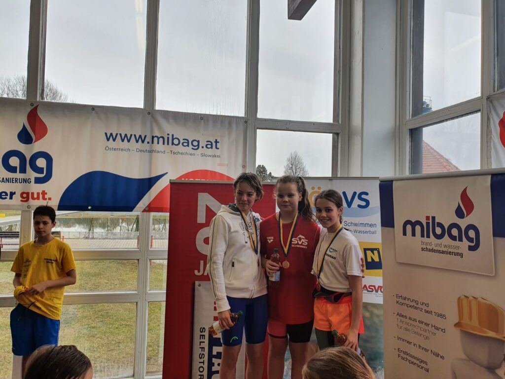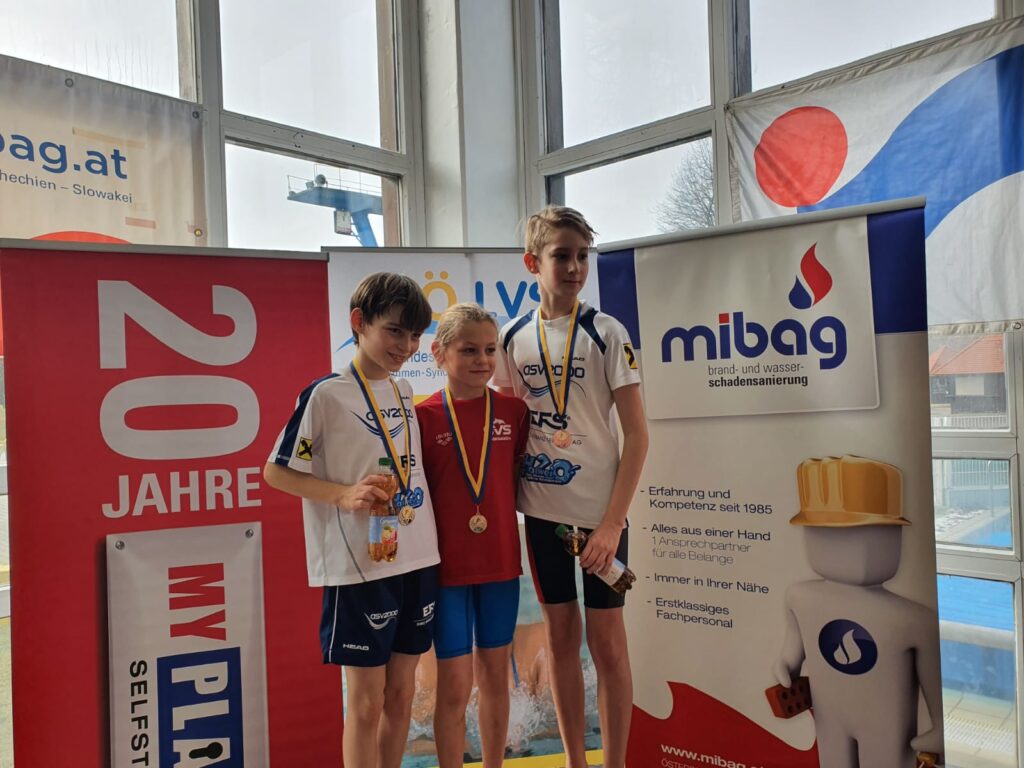Die Landesmeistertitel wurden diesesmal überwiegend von den Brust-Spezialisten des ASV2000 gewonnen. So konnte sich Niklas Schuster (Jg.2005) über den Sieg im Bewerb über 100 Meter Brust freuen. Emilia Hengstberger (Jg. 2008) wurde Landesmeisterin über 50 Meter Brust und Josef Krämer (Jg. 2010) holte sich im gleichen Bewerb den Landesmeistertitel bei den Herren. Außerdem sicherte sich Krämer noch die Goldmedaille und den Landesmeistertitel über 50 Meter Freistil. William Elliott (Jg.2005) gewann den Bewerb über 100 Meter Freistil in einer tollen Zeit von 59, 18. Eine weitere Goldmedaille steuerte noch die erfolgreiche Mädchen-Staffel des ASV2000 bei: Hannah Schuster, Emilia Hengstberger, Melissa Schartner und Sophie Vohryzka erkämpften sich im 4×50 Meter Lagen Bewerb in einem wahren Krimi den obersten Podestplatz. Über die 4×50 Meter Freistil erzielten das ASV2000-Quartett Silber.