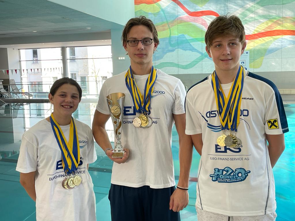 Die jüngste ASV2000-Schwimmerin Juliana Strambach (Jg.2013) konnte in St. Pölten ihre Trainingsergebnisse auch unter Wettkampfbedingungen ins Wasser bringen, und durfte sich über vier Mal Gold freuen. Christian Giefing(Jg. 2008) stand in der Altersklasse Jugend I insgesamt vier Mal ganz oben am Podest. Seine Schwester Katharina Giefing (Jg.2010) holte dreimal Gold und einmal Silber. Josef Krämer (Jg.2010) jubelte über zweimal Gold und einmal Bronze. William Elliott (Jg.2005) sicherte sich über 100 Meter Brust den Landesmeistertitel in der Jugend IV und holte weiters dreimal die Silbermedaille. Kayra Yurdakul nahm eine Silbermedaille und zwei Mal Bronze mit nach Hause. Sophie Vohryzka stand dreimal als Dritte am Podest und ihre Jahrgangskollegin Hannah Schuster gewann einmal Bronze.