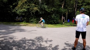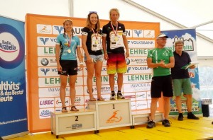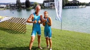 Beginnen wir mit der Dame. Vicky Kneissl markierte die zweitbeste Schwimmzeit von 76 Damen, noch vor heimischen Spitzenathletinnen wie Viktoria Schenk und Michaela Rudolf, und sicherte sich mit einer Gesamtzeit von 1:18:57 den zweiten Platz der Junioren Klasse, und damit gleichzeitig den zweiten Platz in der ASKÖ Landesmeisterschaft und den ersten Platz bei der NÖ Landesmeisterschaft. Reinhard Fortyn, nach einem kurzen Durchhänger vergangene Woche in Krems und einem Tag nach seinem Start in Gerasdorf, wieder voller Elan, spielte mit der 14.besten Radzeit von 275 Finishern wieder seine gewohnte Stärke aus und platzierte sich mit 1:10:53 auf dem fünften Platz der M45. Gleichzeitig erreichte er damit den zweiten Platz der M40 bei der ASKÖ Landesmeisterschaft und den dritten Platz bei der NÖ Landesmeisterschaft. Ich selbst (Roland Kneissl) hatte mein erstes Ziel schon nach dem Schwimmausstieg erreicht. Nämlich vor Vicky, die drei Minuten hinter mir in mit der nächsten Welle gestartet war, aus dem Wasser zu sein. Der restliche Bewerb verlief auch ganz gut und ich finishte mit 1:14:33 als sechster der M50. Zugleich ergab das den zweiten Platz der ASKÖ Landesmeisterschaft und den fünften Platz bei der NÖ Landesmeisterschaft.