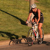 Am Sonntag, 9. September 2012 war es dann so weit — der Wettkampftag. Um 4 Uhr hat der Tag für mich begonnen. Mein Start war zwar erst um 7:50, allerdings wurde die Wechselzone bereits um 6 Uhr geschlossen. Um 6:30 war dann der Start der Profis. Da es um 6 Uhr gerade mal hell wurde, waren die Temperaturen um diese Tageszeit noch sehr angenehm. Als ich dann eine Stunde und 20 Minuten später mit den restlichen Mädels der Altersklassen 18-24 und 25-29 startete, stand die Sonne schon am Himmel und die Temperaturen stiegen. Die 1,9km wurden im Lake Las Vegas geschwommen, welcher sehr braunes und warmes — ca. 28°C — Wasser hatte. Nach 32:07 beendete ich als 17. in meiner Altersklasse das Schwimmen und war mit meiner Leistung sehr zufrieden. Als nächstes ging es aufs Rad. Die Strecke führte in den Lake Mead National Park und war echt genial. Kaum flache Stücke, sondern ständige „rolling hills“, die man aber nicht mit Schwung nehmen konnte. Insgesamt hatte die Radstrecke wohl an die 1000 Hm. Super zum fahren und es hat echt Spaß gemacht. Auch das Windschatten fahren war im Vergleich zu Clearwater (wo die Leute in riesigen Gruppen wie bei einem Radmarathon fuhren) wesentlich besser. Es gab keine großen Gruppen, auch wenn der Abstand eventuell bei dem ein oder anderen Mal deutlich geringer war als erlaubt. Die letzten Kilometer der Radstrecke waren leider nicht mehr ganz so schön, mit Gegenwind und bergauf. Als ich dann endlich zur Wechselzone kam, war ich schon ziemlich erledigt. Trotz vier Versorgungsstationen auf der Radstrecke, bei denen ich mir immer etwas genommen hatte, bin ich schon dehydriert zum Laufen gekommen. Trotzdem bin ich mit meiner Radzeit (7. in meiner Altersklasse) sehr zufrieden.