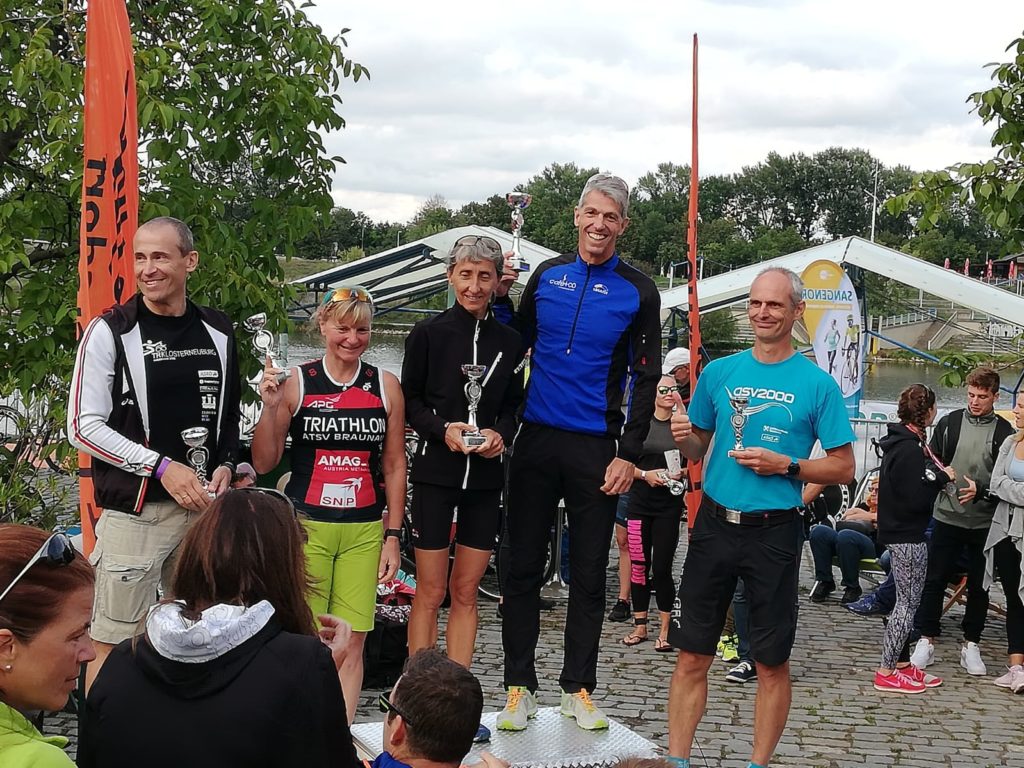 Nach eher zachem Beginn beim Schwimmen (Zitat Marco) und solider Radleistung, konnte er sich beim Laufen extrem steigern und erreichte mit 1:06:45 Stunde den dritten Platz in der AK U-23. Ähnlich erging es Roland. Mit einer leichten Steigerung beim Laufen gegen Saisonende erzielte auch er den dritten Platz in der AK M50-54.