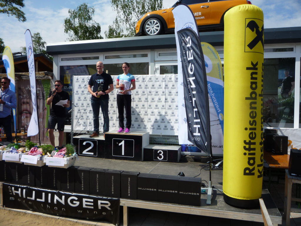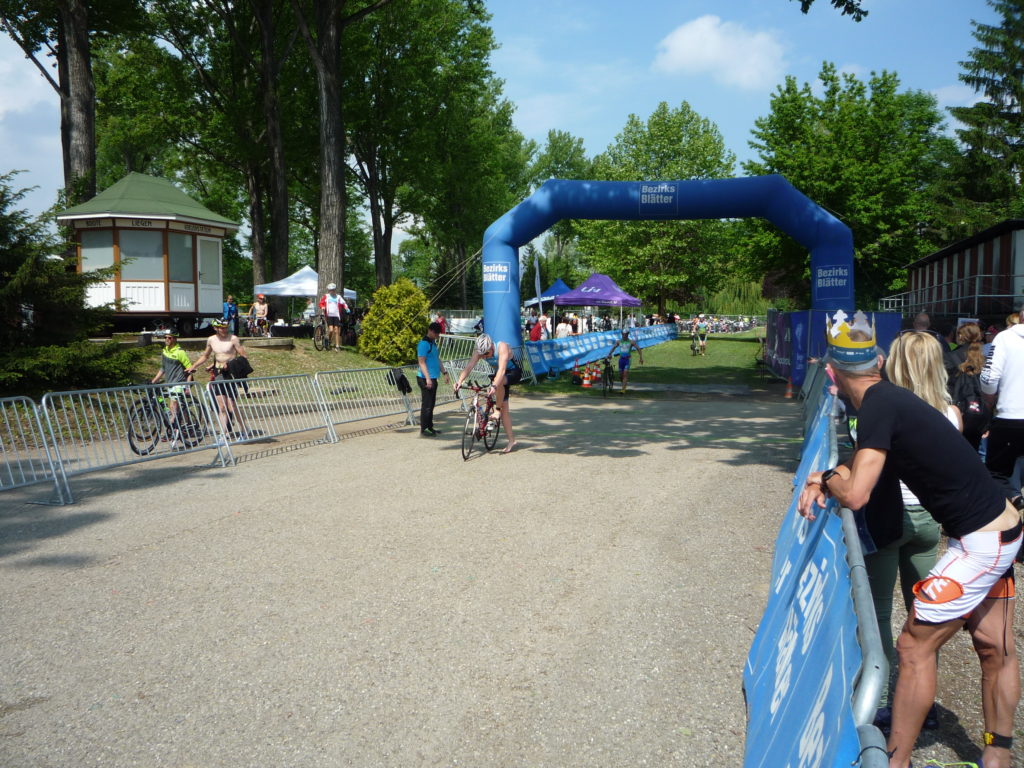 Durch die fast winterlichen Temperaturen der vorangegangenen Tage, war es nicht ganz klar ob geschwommen werden konnte oder nicht, aber die dann doch jahreszeitlich passenderen Temperaturen kurz vor dem Bewerb haben dann das Schwimmen, zwar mit Neoprenpflicht, aber dennoch erlaubt. Ich konnte das Wasser mit der viertbesten Schwimmzeit verlassen. Der gefühlt anstrengendste Teil des Rennens, war der sehr lange Weg vom Wasser in die Wechselzone. Dort schnell das Rad geschnappt und bei leichtem Wind die 20 Kilometer absolviert. Es wurden zwei Runden gefahren. Nach anschließenden zwei Laufrunden konnte ich den zweiten Platz in der Altersklasse U-23 ergattern.