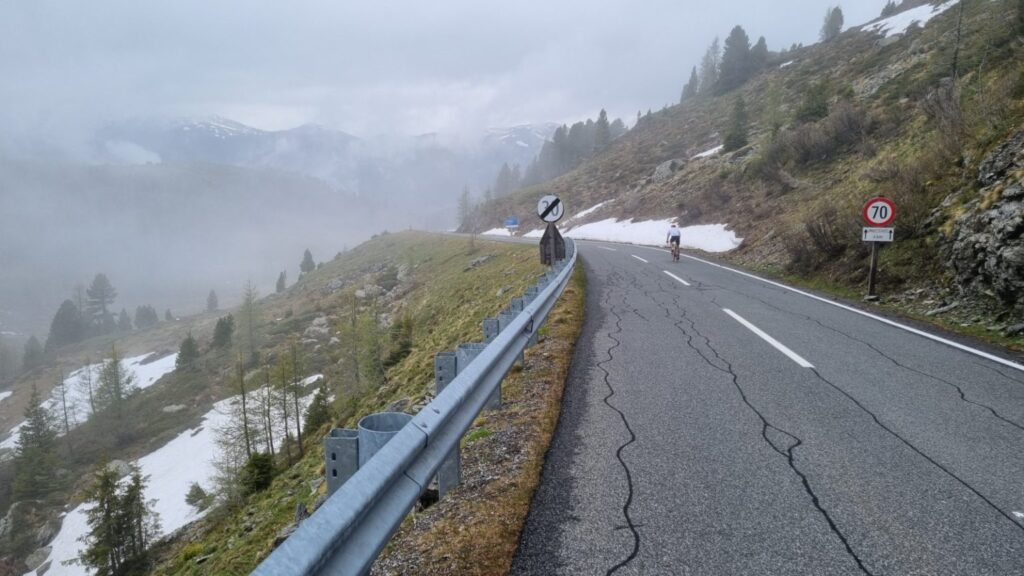 Rund 350 begeisterte Radlerinnen und Radler aus Österreich, Deutschland, Italien, USA und vielen anderen Nationen machten sich um 7:30 Uhr bei frischen 12° Celsius auf den Weg durch den Biospährenpark Nockberge. Gewertet wurde nicht wie üblich die komplette Fahrtzeit, sondern nur die Summe der drei längsten Anstiege auf die Schiestelscharte, die Eisentalhöhe (beide über 2.000 Meter) und das Ziel in Bad Kleinkirchheim. Dieses interessante Format bietet den Teilnehmern die Möglichkeit, sich dreimal ordentlich auszupowern, um sich danach am Gipfel entspannt zu laben, zu tratschen, Fotos zu schießen, und vollkommen relaxed und risikobefreit die Abfahrt zu genießen. Die Einzigartigkeit der Landschaft und die unglaubliche Schönheit der Natur lassen die Strapazen des ersten Anstieges von 13 Kilometer Länge und 900 Höhenmeter (fast) vergessen. Petrus meinte es auch halbwegs gut und die 7° Celsius am Gipfel machten auch die Abfahrt erträglich. Apropos … die 40 Kilometer Abfahrt von der Eisentalhöhe bis Seeboden am Millstätter See war mitunter das Geilste was ich je erlebt habe. Insgesamt eine sehr gut organisierte Veranstaltung mit einzigartigem Naturerlebnis. Hochgradig empfehlenswert. Ergebnis nebensächlich.
