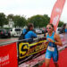 Pünktlich um 9.15 Uhr startete der Bewerb über die olympische Distanz. Jacqueline Kallina war nach dem Schwimmen die schnellste ASV- Athletin und ging als erste Dame aus dem Wasser. Durch eine extrem schnelle Wechselzeit wurde Jacqui dann von Manuel Fellner in der Wechselzone überholt und die beiden gingen knapp hintereinander auf die flache, windanfällige Radstrecke. Dabei waren zwei Runden über 20km zu absolvieren. Mit einem starken Radsplit konnte Dietmar Inführ den Abstand auf die beiden verkürzen. Auf der abschließenden Laufstrecke mit vier Runden um den See konnte Didi dann durch eine starke Laufzeit weiter auf- und überholen und finishte als schnellster ASV- Athlet nach 2:14:07 auf dem 3. Platz der AK M-40. Dicht dahinter dann Manuel mit 2:14:37 auf dem 2. Platz der AK U-23 sowie Jacqui, die mit 2:15:14 den 1. Platz Elite 1 sowie dem 2. Platz im Gesamtklassement belegte und sich nur Kamila Pollak geschlagen geben musste.