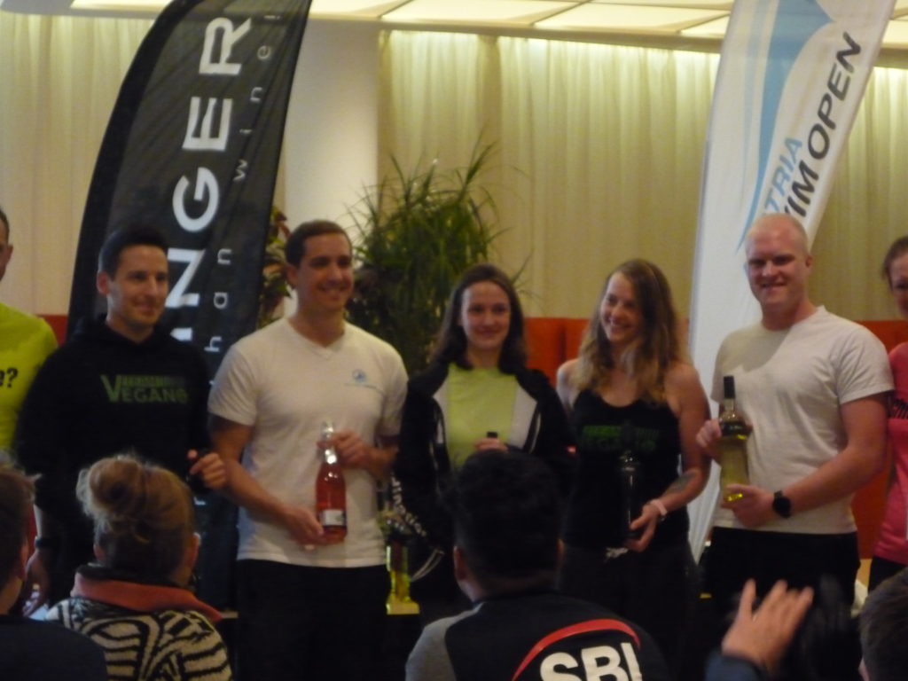 Die Siegerehrung – im Restaurant des Areals – war dafür dann sehr schnell und nicht Elends lang. In der Zwischenzeit hatte es abgekühlt. Geehrt wurden alle Sieger der Kinderbewerbe am Vormittag und die drei Hauptbewerbe (0,5 Kilometer; 1,25 Kilometer; 2,5 Kilometer).