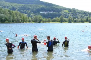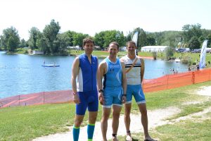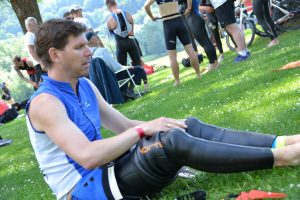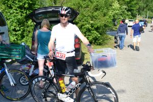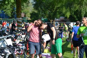 Knapp eine Woche später: 27. Mai 2017: Linz – österreichische Staatsmeisterschaften auf der Double Olympic Distanc. Bei der 13. Auflage am Pleschinger See gab es sommerlich heißes Wetter. Da diese Temperaturen für heuer noch ungewohnt waren, brachten sie eine Hitzeschlacht am Nachmittag auf der anspruchsvollen Strecke. Diesmal kämpften unsere Herren. Am schnellsten im Ziel war Dietmar Inführ in 5:15:55 – Zitat „Eines meiner härtesten Rennen!“. Nach langer verletzungsbedingter Trainingspause freute sich unser Trainer Geri über 5:19:56 – Hauptsache das Knie hat gehalten 😉 und Heinz Ludl über 5:29:47. Pech für Bernhard: Nach Kilometer 75 hatte er eine Radpanne 🙁